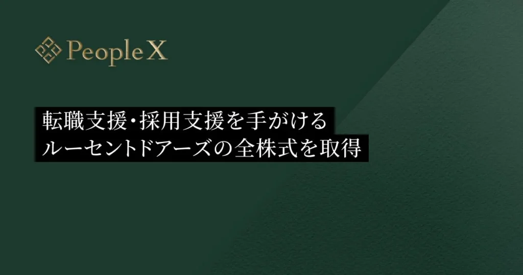 株式会社PeopleXがルーセントドアーズ株式会社の全株式を取得し、子会社化しました。これにより、AI技術と長年の人材支援ノウハウを融合させ、深刻化する日本の労働市場の課題解決を目指します。 -