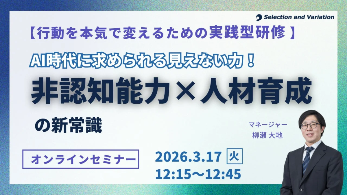 セレクションアンドバリエーション株式会社は、この重要な「非認知能力」の育成について、実践的なアプローチを紹介する無料オンラインセミナーを開催いたします。